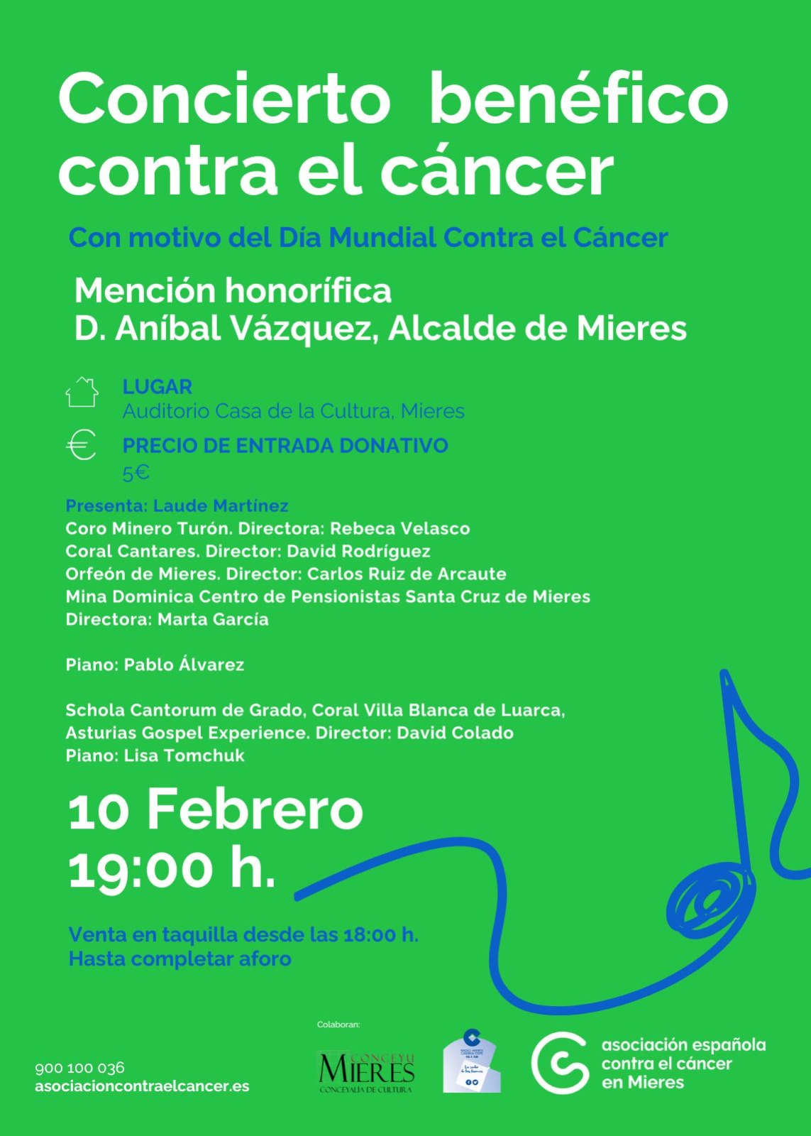 Día 10: Mieres, Casa de la Cultura. Concierto benéfico contra el cáncer