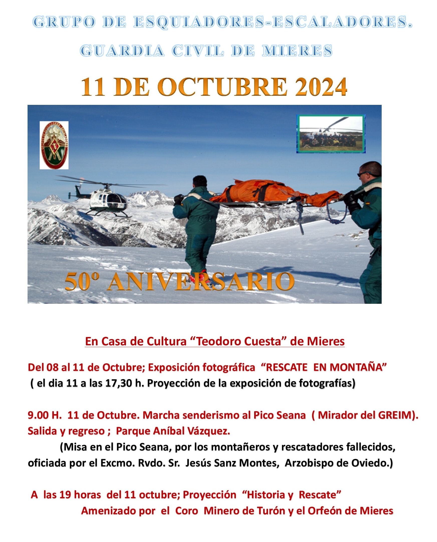 Día 11: Mieres, Casa de la Cultura. 50 Aniversario del Grupo de Esquiadores / Escaladores de la Guardia Civil