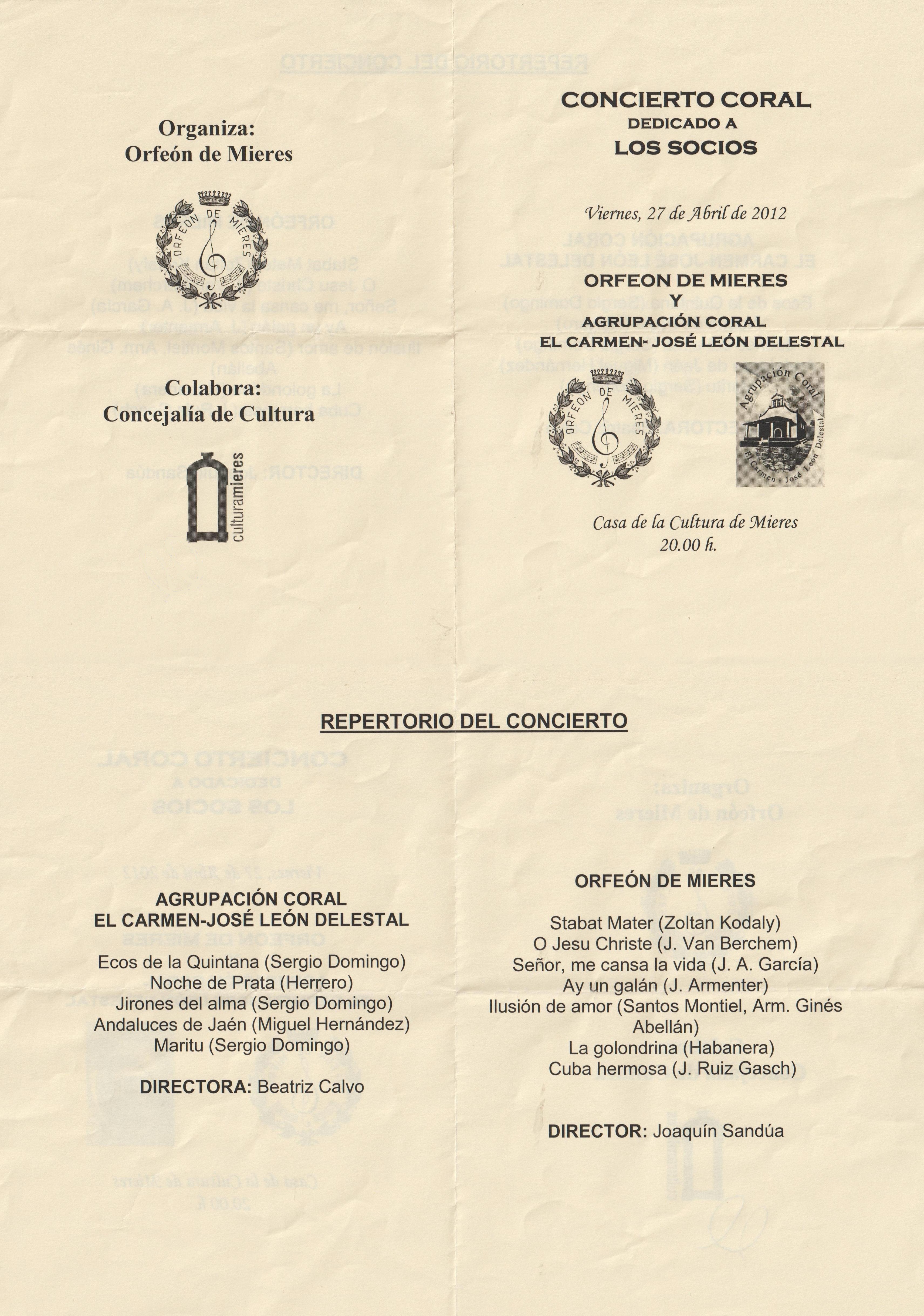 Día 27: Mieres, Casa de la Cultura. Concierto de Primavera dedicado al socio