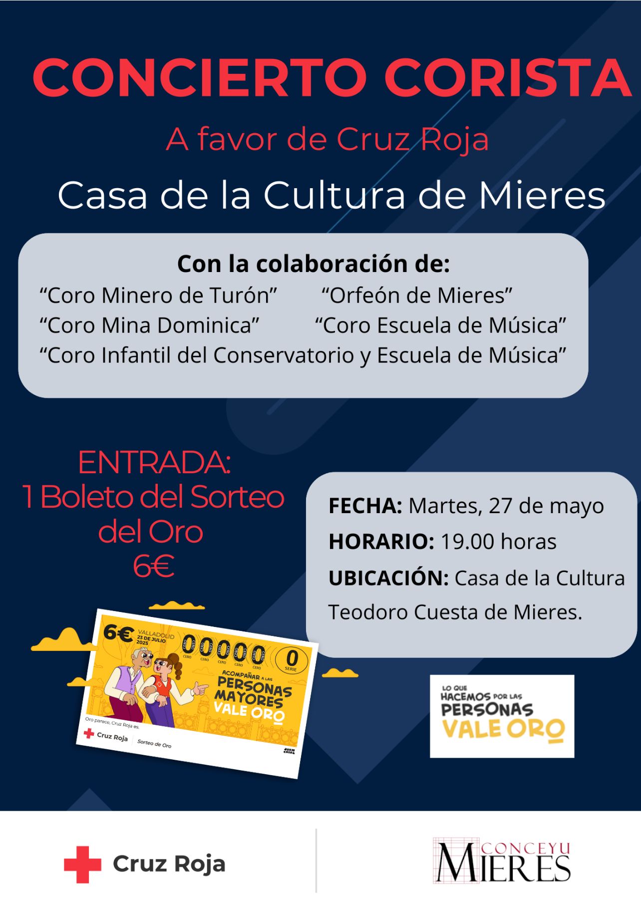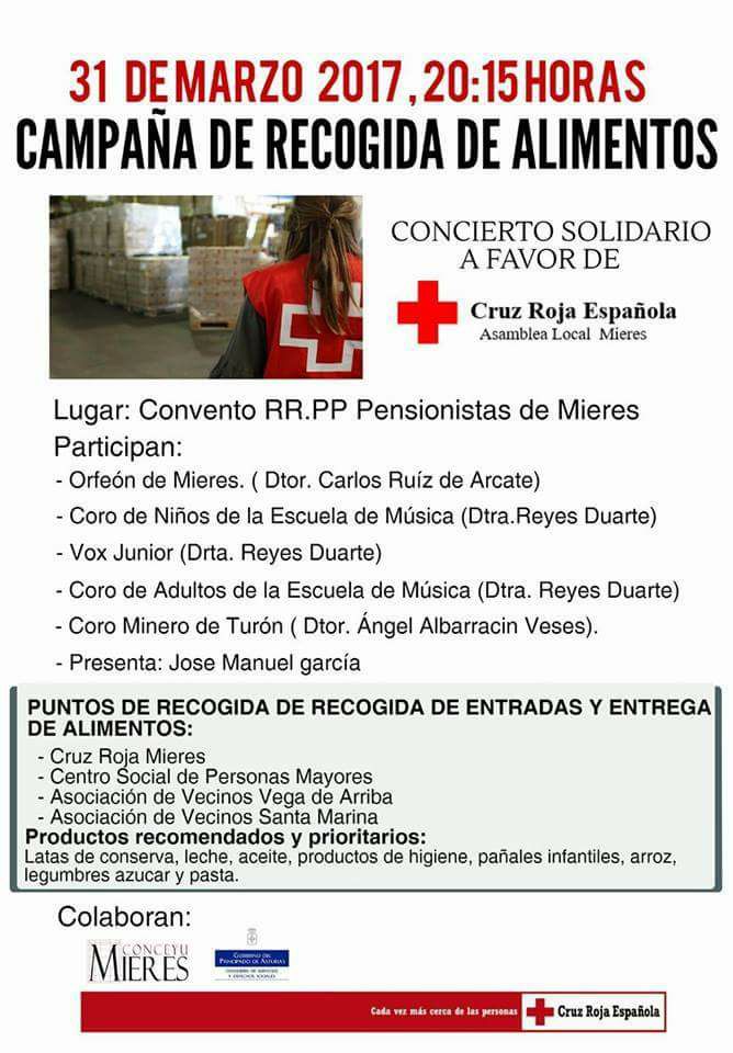 Día 27: Mieres, Casa de la Cultura. Concierto benéfico a favor de Cruz Roja