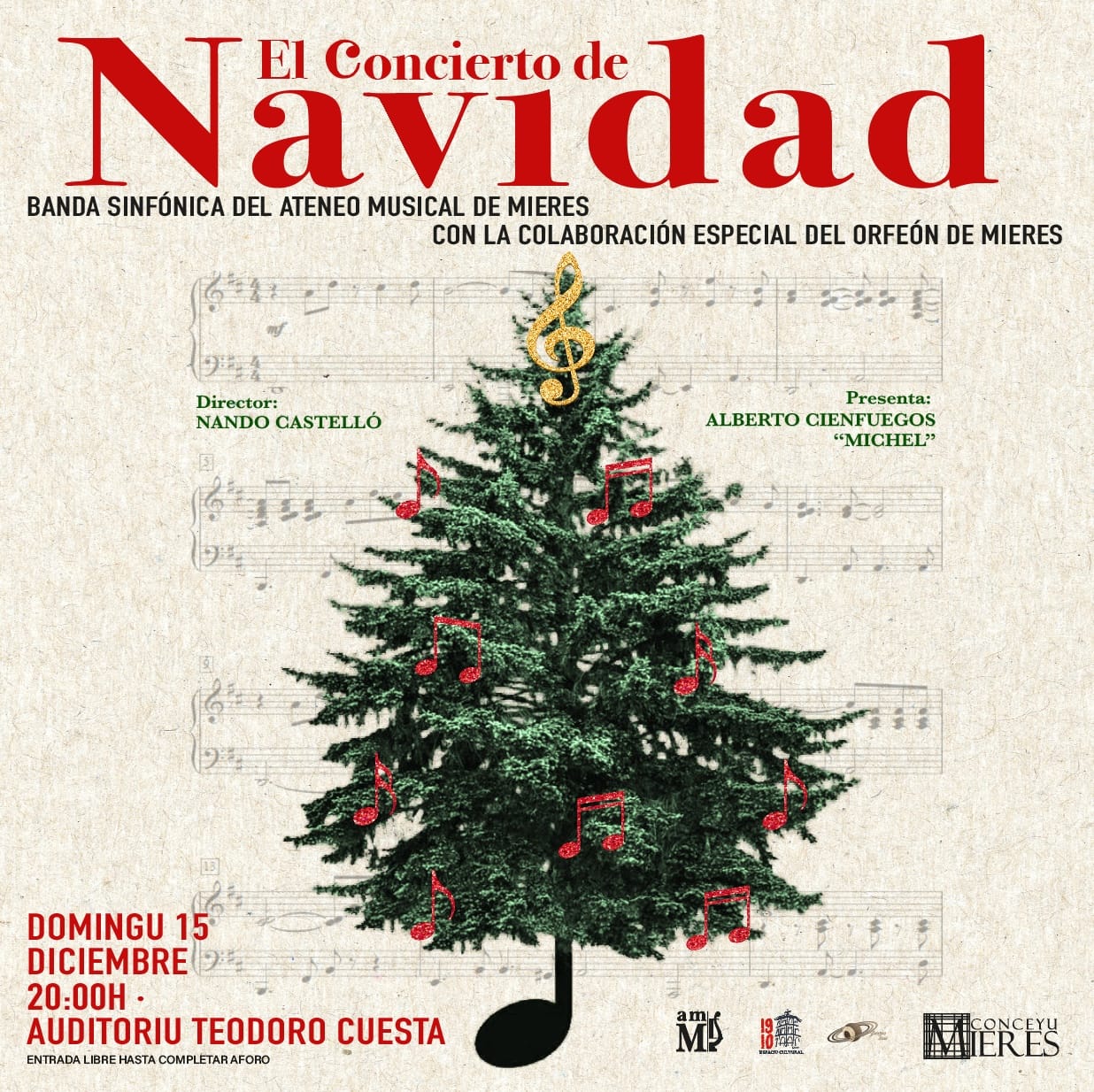 Día 15: Mieres, Casa de la Cultura. Concierto de Navidad con la Banda Sinfónica del Ateneo Musical de Mieres