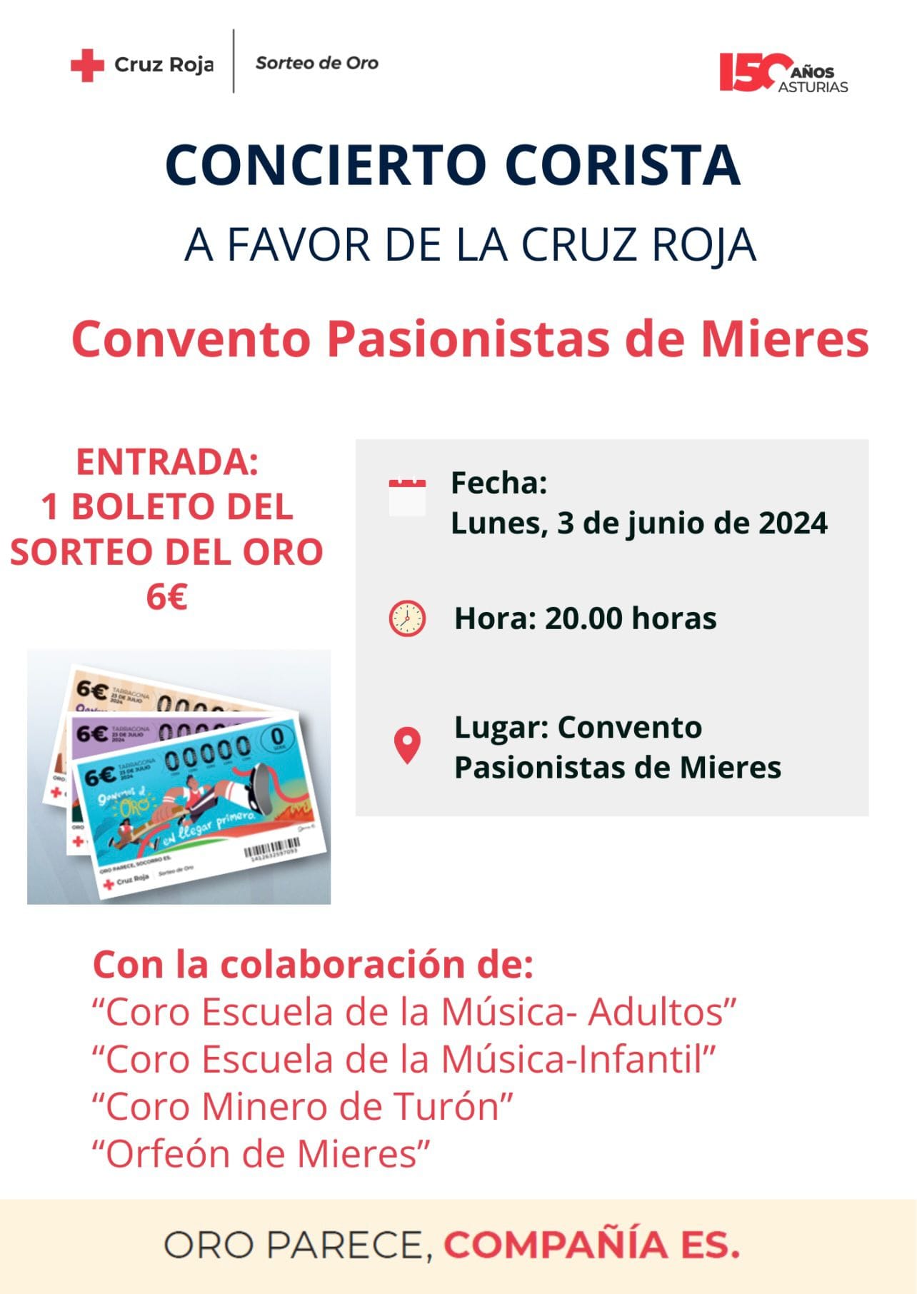 Día 3: Mieres, Iglesia Padres Pasionistas. Concierto benéfico a favor de Cruz Roja