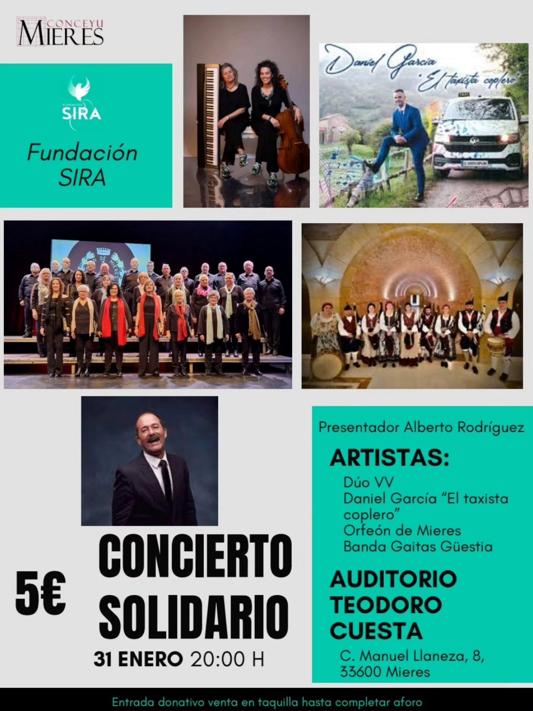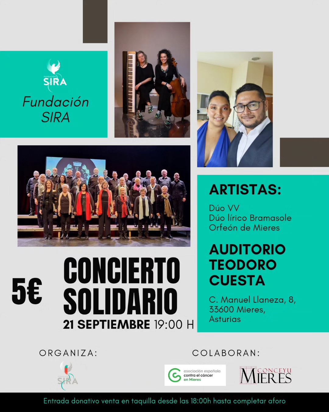 Día 31: Mieres, Casa de la Cultura. Concierto solidario Fundación Sira