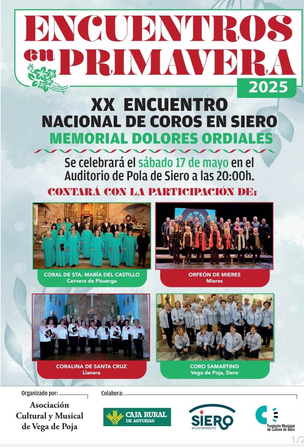 Día 17: Pola de Siero, Auditorio Pola de Siero. XX Encuentro nacional de coros en Siero