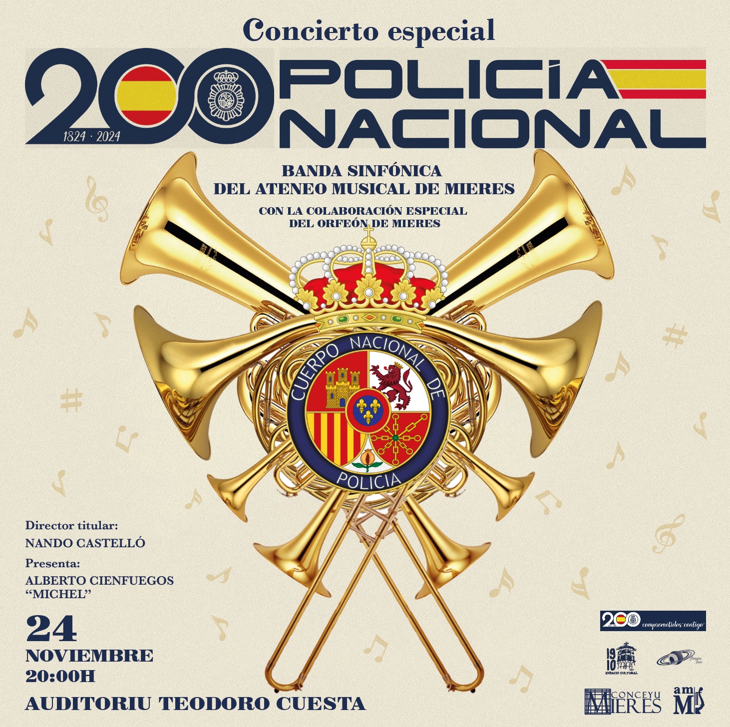 Día 24: Mieres, Casa de la Cultura. Colaboración con la Banda Sinfónica del Ateneo Musical de Mieres en el Concierto especial Policía Nacional
