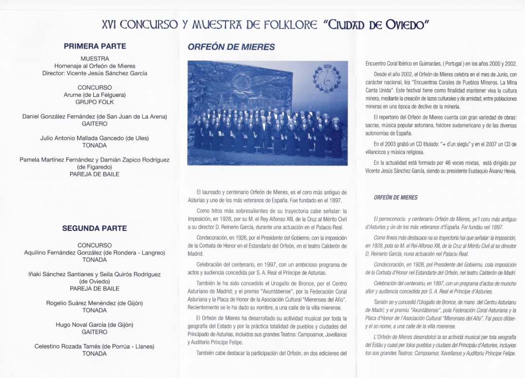 Día 30: Oviedo, Teatro Campoamor. Homenaje por el 110 Aniversario del Orfeón de Mieres