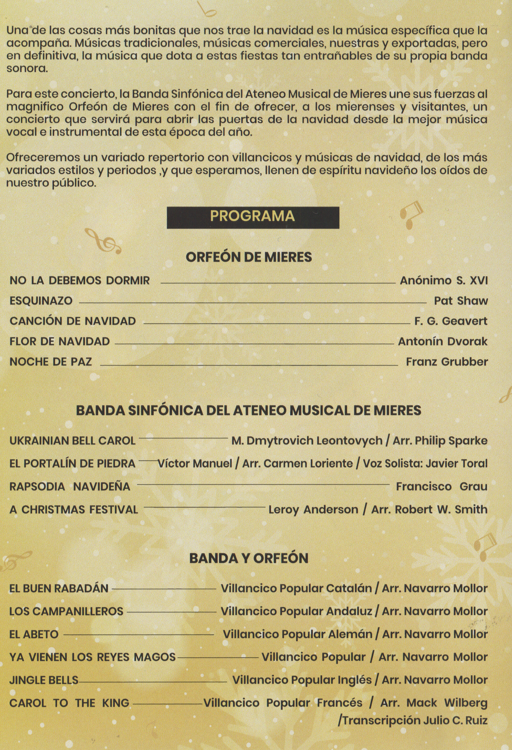 Día 22: Mieres, Iglesia de San Juan Bautista. Concierto de Navidad con la AMAM