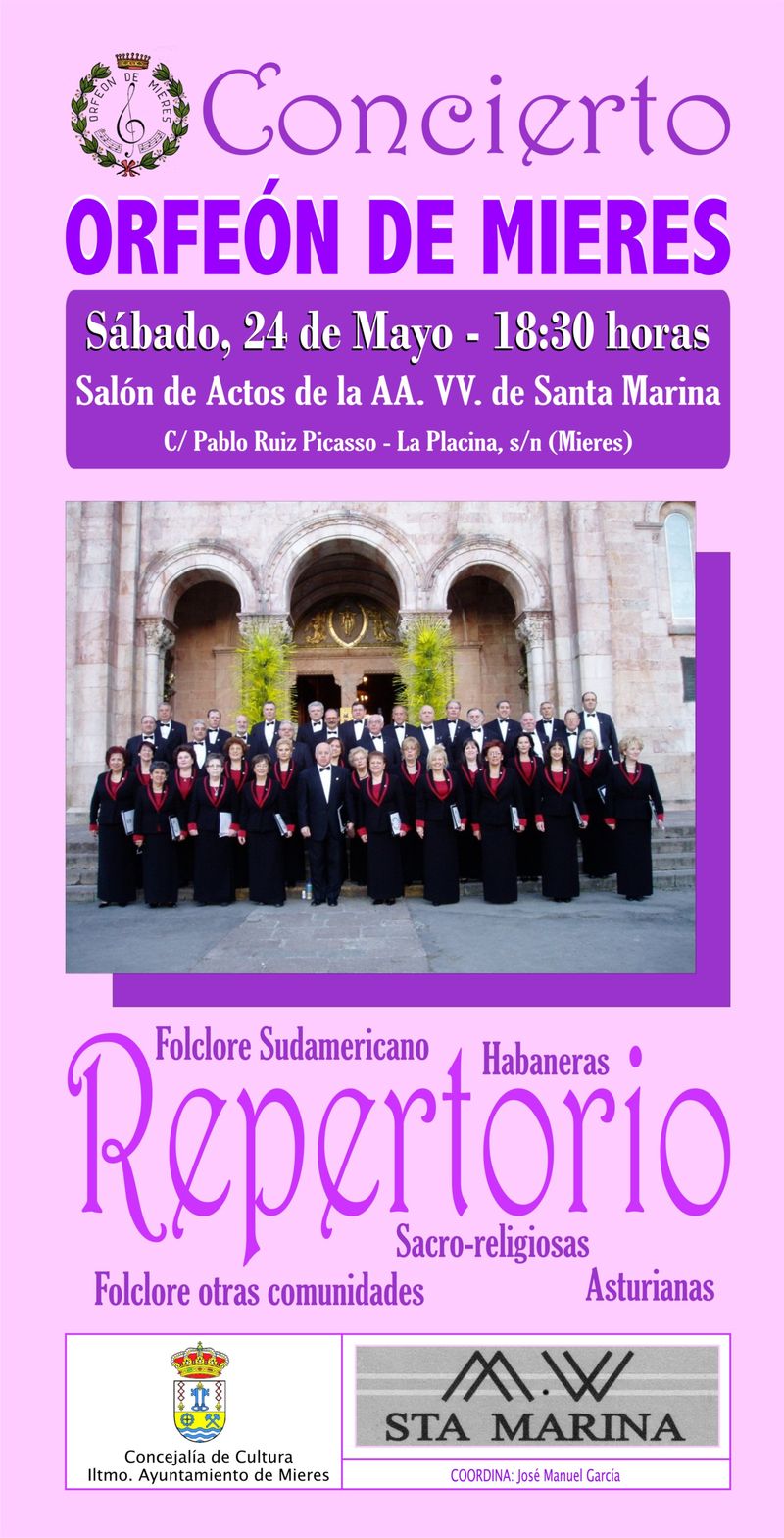 Día 24: Mieres, Iglesia Padres Pasionistas. Concierto de Primavera dedicado a los socios
