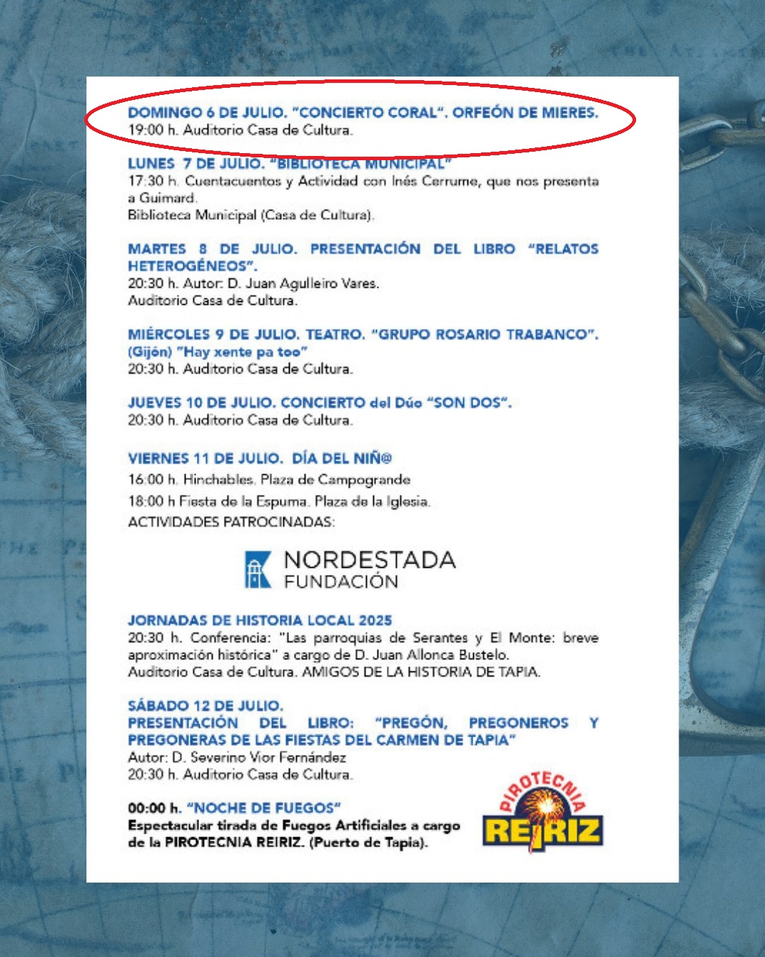Día 6: Tapia de Casariego, Casa de la Cultura. Concierto Coral dentro de las fiestas del Carmen