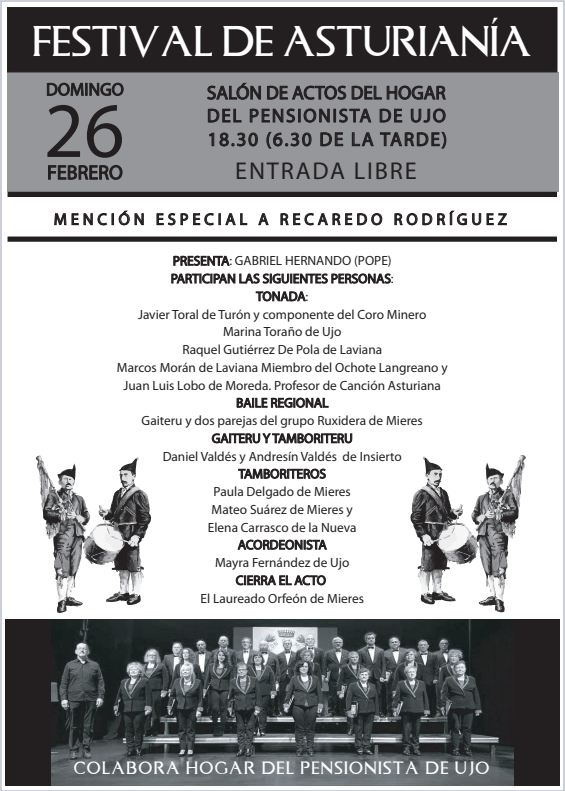 Día 26: Ujo (Mieres), Hogar del Pensionista. Festival de Asturianía