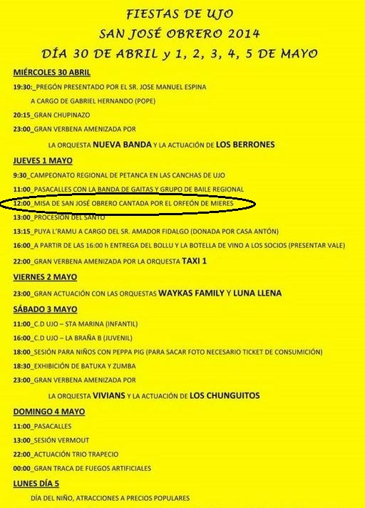 Día 1: Ujo, Iglesia de Santa Eulalia. Misa en honor a San José Obrero